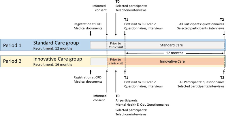 Methods: Two cohorts of 682 patients each are sequentially recruited from 11 university-based German Centers for Rare Diseases (CRD): the standard care cohort (control, somatic expertise only) and the innovative care cohort (experimental, combined somatic and mental health expertise). Individuals aged 12 years and older presenting with symptoms and signs which are not explained by current diagnoses will be included. Data will be collected prior to the first visit to the CRD's outpatient clinic (T0), at the first visit (T1) and 12 months thereafter (T2).