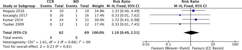 Results: The current analysis included four trials on this topic, and all AC joint dislocations were classified as Rockwood types III to VI. The pooled data showed that the CCR group had significantly better post-operative American Shoulder and Elbow Surgeons Shoulder (ASES) scores, Oxford Shoulder Scores (OSSs), and Nottingham Clavicle Scores (NCSs) than the WD group, with a significant difference (p < 0.001, p = 0.020, and p < 0.001, respectively). In terms of the post-operative Constant-Murley Scores (CMSs), there were no significant differences between the CCR group and the WD group (p = 0.100). The CCR group had significantly better post-operative abduction and flexion of the index shoulder than the WD group (p < 0.001 and p < 0.001, respectively). In terms of radiological outcomes, the post-operative coracoclavicular distance (CCD) with a 10 kg load was smaller in the CCR group compared to that in the WD group (p < 0.001). The overall surgical wound infection rate was 11.6% in the WD group and 12.9% in the CCR, respectively (p = 0.82).
