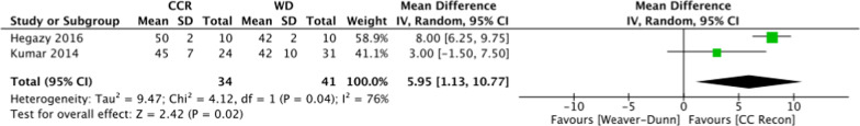 Conclusion: The CCR group had better clinical outcome scores in the ASES, OOS, NCS, abduction, flexion, and external rotation than the WD group. In terms of radiological outcomes, the CCR group showed less displacement in weight-loaded post-CCD than the WD group, which indicated that the CCR provided more stability and resistance to deformation forces.