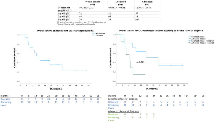 Conclusion: In this series, CIC-rearranged sarcomas affected young adults and had a high incidence of presenting with, or developing, metastatic disease. The prognosis overall was poor. In advanced disease, durable systemic therapy responses were infrequent.
