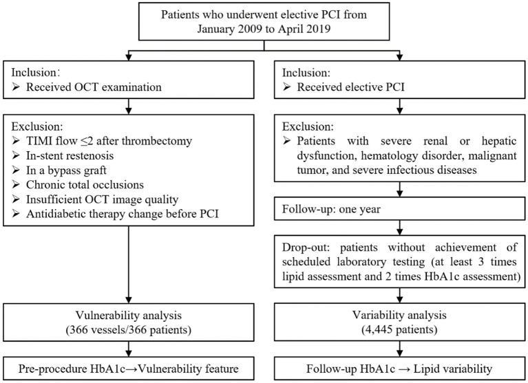 Conclusion: In patients undergoing elective PCI, elevated HbA1c increases the atherosclerotic plaque vulnerability and the visit-to-visit variability of lipid profiles, which is consistent in non-diabetic patients.