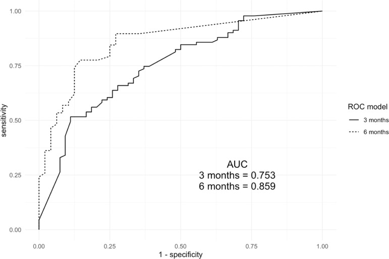 Results: A predictive model for complete response (CR) was established based on the initial treatment response. A cutoff value of 20% reduction in tumour size at 3 months of treatment identified the patients with a high probability (82.76%) to achieve CR. A second cutoff value of 67.7% reduction in tumour size at 6 months of treatment improved the prediction to a 95.42% probability of a CR outcome.