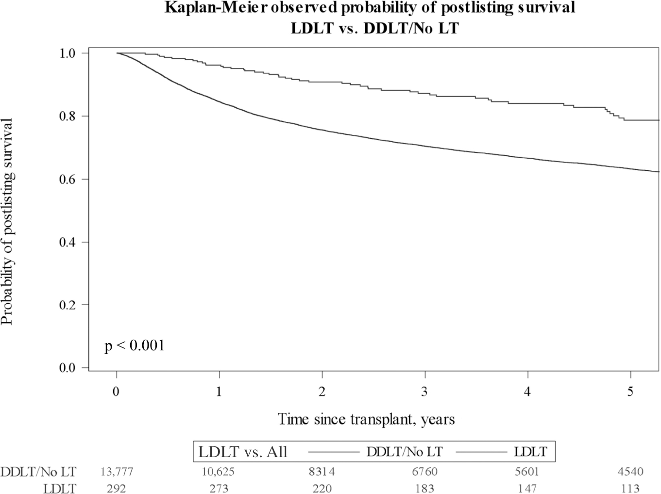 Living donor liver transplantation (LDLT) is an attractive option to decrease waitlist dropout, particularly for patients with hepatocellular carcinoma (HCC) who face lengthening waiting times. Using the United Network for Organ Sharing (UNOS) national database, trends in LDLT utilization for patients with HCC were evaluated, and post-LT outcomes for LDLT versus deceased donor liver transplantation (DDLT) were compared. From 1998 to 2018, LT was performed in 20,161 patients with HCC including 726 (3.6%) who received LDLT. The highest LDLT utilization was prior to the 2002 HCC Model for End-Stage Liver Disease (MELD) exception policy (17.5%) and dropped thereafter (3.1%) with a slight increase following the 6-month wait policy in 2015 (3.8%). LDLT was more common in patients from long-wait UNOS regions with blood type O, in those with larger total tumor diameter (2.3 vs. 2.1 cm, p = 0.02), and higher alpha-fetoprotein at LT (11.5 vs. 9.0 ng/ml, p = 0.04). The 5-year post-LT survival (LDLT 77% vs. DDLT 75%), graft survival (72% vs. 72%), and HCC recurrence (11% vs. 13%) were similar between groups (all p > 0.20). In conclusion, LDLT utilization for HCC has remained low since 2002 with only a slight increase after the 6-month wait policy introduction in 2015. Given the excellent post-LT survival, LDLT appears to be an underutilized but valuable option for patients with HCC, especially those at high risk for waitlist dropout.