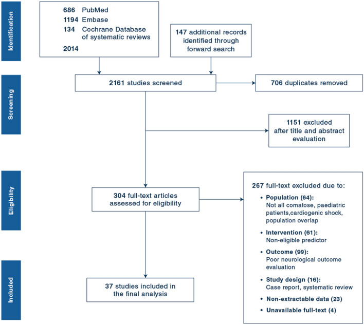 - Sandroni C, D'Arrigo S, Cacciola S, Hoedemaekers CWE, Kamps MJA, Oddo M, Taccone FS, Di Rocco A, Meijer FJA, Westhall E, Antonelli M, Soar J, Nolan JP, Cronberg T. Prediction of poor neurological outcome in comatose survivors of cardiac arrest: a systematic review. Intensive Care Med. 2020;46:1803–1851. doi: 10.1007/s00134-020-06198-w. - DOI - PMC - PubMed