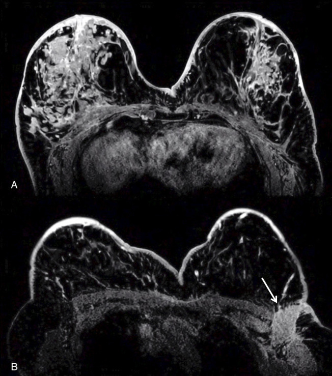 Eccrine porocarcinoma is a rare skin adnexal malignant neoplasm that may arise from a pre-existing benign eccrine poroma or without a predisposing factor. It is a highly invasive neoplasm and has a strong metastatic potential. The most frequently affected organs are the lymph nodes and rarely solid organs such as the liver, lungs and breast. We report a case of a woman with a history of surgically treated eccrine porocarcinoma that a year later presented with multiple lesions in both breasts and axillary lymphadenopathies. After a detailed imaging investigation, the diagnosis of metastatic lesions from porocarcinoma was made. To our knowledge, until the moment, only one case of breast metastasis of eccrine porocarcinoma has been reported in the literature.