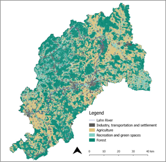 Compared to technical infrastructure, nature-based solutions, NBS, strive to work with nature and to move beyond business-as-usual practices in order to address societal challenges such as flood risks. This research aims to spatially identify possible NBS areas and evaluate the areas capacity to provide selected ecosystem services, ES, for the Lahn river landscape in Germany. The research follows the functional landscape approach using hydromorphological landscape units, HLU, based on specific biophysical spatial criteria, such as slope, to then identify locations which may be considered suitable for NBS. The current ES delivery of these possible NBS areas is then evaluated. The three ES assessed are carbon storage, nutrient retention and recreation. We then undertake a geospatial comparison analysis to show the spatial relationships and patterns that emerge in regards to the ES configuration of the distinct NBS apt areas. Results show the HLU method serves to delineate and identify areas where NBS may exist or be implemented. The data depicts a distinct spatial pattern for each possible NBS space and complementary ES delivery. This explorative method is a useful spatial approach that can support NBS implementation and serve to investigate the multiple benefits NBS provide. The use of ecosystem services to compare and understand NBS is a viable prospect that must, however, be cautiously, locally and scientifically approached. Noticeable limitations regarding ES assessment remain, as available methods are often insufficiently inclusive of natural ecosystem processes and functions. Further research should assess a broader spectrum of NBS and their delivery of ES.
