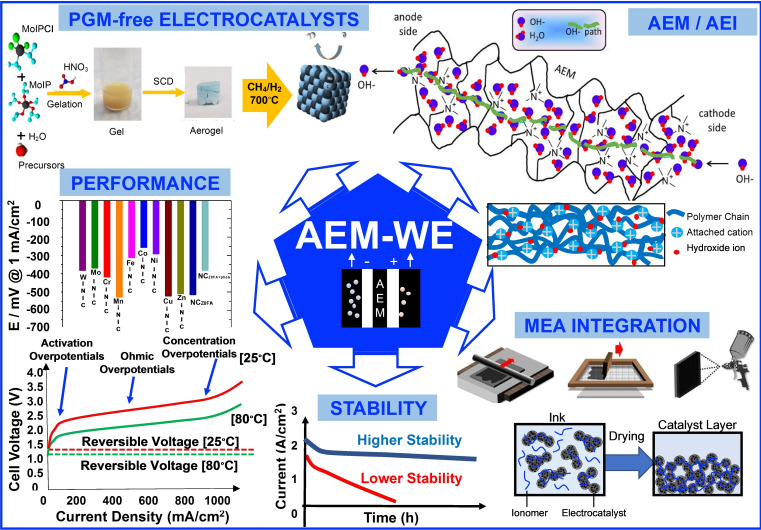 Keywords: anion-exchange membrane; electrocatalysis; electrolyzers; platinum-group metal-free; water electrolysis.