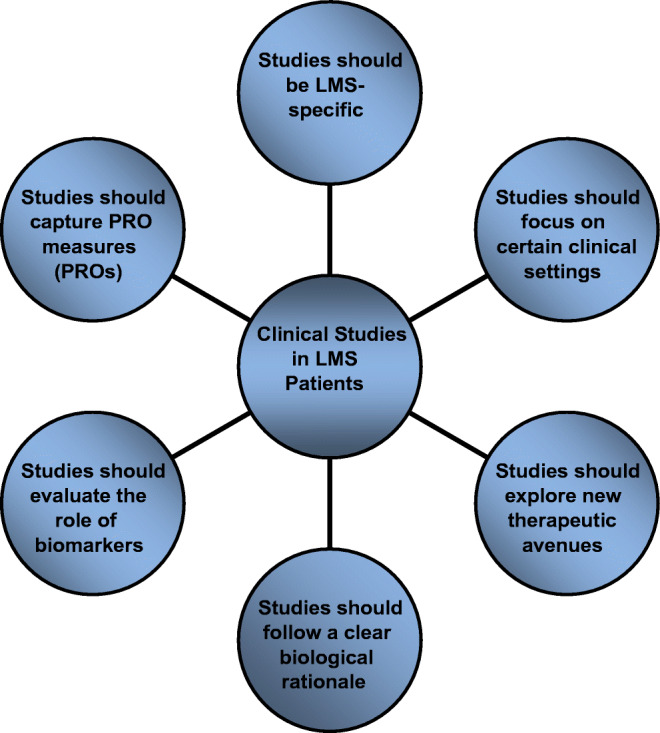 Leiomyosarcoma is one of the most common subtypes of soft tissue sarcomas accounting for approximately 20% of sarcomas. As leiomyosarcoma patients frequently develop metastatic disease, effective systemic therapies are needed to improve clinical outcomes. The overall activity of the currently available conventional systemic therapies and the prognosis of patients with advanced and/or metastatic disease are poor. As such, the treatment of this patient population remains challenging. As a result, there is a clear unmet medical need, and designing and performing meaningful clinical studies are of utmost importance to improve the prognosis of this patient group. Therefore, the aim of this review is to briefly summarize state-of-the-art treatments for leiomyosarcoma patients and to describe trial characteristics needed for informative clinical studies.