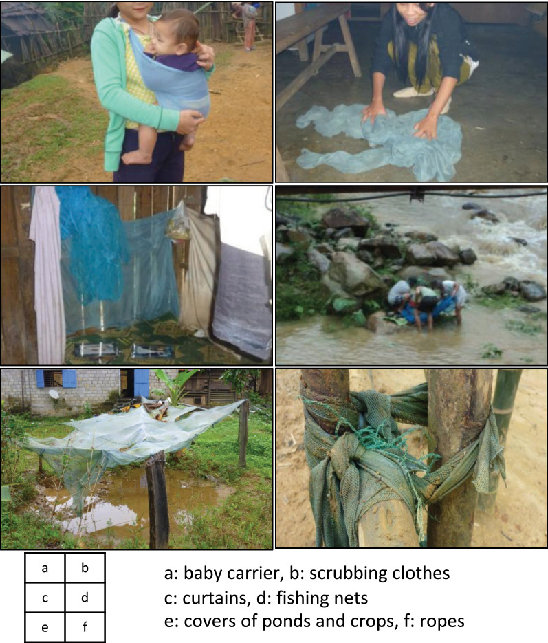 Results: The Ca Dong and M'nong's livelihood was dependent on swidden farming in the forest. Poverty-related factors, including the lack of beds, blankets, the practice of sleeping around the kitchen fire and deteriorated ITNs due to open housing structures, were reasons for alternative and non-use of ITNs. When household members stayed overnight in plot huts at fields, ITNs were even more unavailable and easily deteriorated. 72.5% of households reported having received one net for every two persons, and 82.2% of participants reported to have used ITNs the night before the survey. However, only 18.4% of participants were estimated to be effectively protected by ITNs after accounting for the availability of torn ITNs and the way ITNs were used, for example as blankets, at both village and fields. Multi-variable logistic regression showed the effect of four significant factors for appropriate ITN use: i) being female (AOR = 8.08; p = 0.009); ii) aware of mosquito bites as the sole cause of malaria (AOR = 7.43; p = 0.008); iii) not sleeping around the kitchen fire (AOR = 24.57; p = 0.001); and iv) having sufficient number of ITNs in the household (AOR = 21.69; p = 0.001).