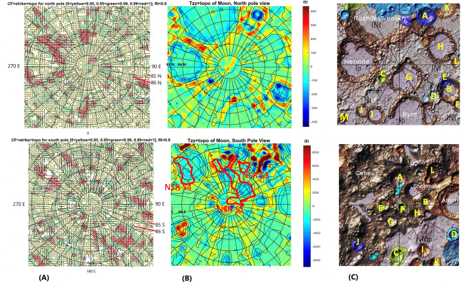 Our Moon periodically moves through the magnetic tail of the Earth that contains terrestrial ions of hydrogen and oxygen. A possible density contrast might have been discovered that could be consistent with the presence of water phase of potential terrestrial origin. Using novel gravity aspects (descriptors) derived from harmonic potential coefficients of gravity field of the Moon, we discovered gravity strike angle anomalies that point to water phase locations in the polar regions of the Moon. Our analysis suggests that impact cratering processes were responsible for specific pore space network that were subsequently filled with the water phase filling volumes of permafrost in the lunar subsurface. In this work, we suggest the accumulation of up to ~ 3000 km3 of terrestrial water phase (Earth's atmospheric escape) now filling the pore spaced regolith, portion of which is distributed along impact zones of the polar regions of the Moon. These unique locations serve as potential resource utilization sites for future landing exploration and habitats (e.g., NASA Artemis Plan objectives).