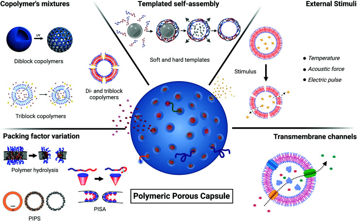 Polymeric porous capsules represent hugely promising systems that allow a size-selective through-shell material exchange with their surroundings. They have vast potential in applications ranging from drug delivery and chemical microreactors to artificial cell science and synthetic biology. Due to their porous core-shell structure, polymeric porous capsules possess an enhanced permeability that enables the exchange of small molecules while retaining larger compounds and macromolecules. The cross-capsule transfer of material is regulated by their pore size cut-off, which depends on the molecular composition and adopted fabrication method. This review outlines the main strategies for manufacturing polymeric porous capsules and provides some practical guidance for designing polymeric capsules with controlled pore size.
