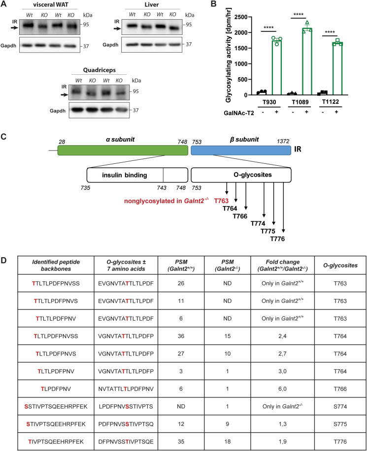 Conclusions: This study identifies a novel role for GALNT2 in energy homeostasis, and our findings suggest that the local effects of GalNAc-T2 are mediated through posttranslational modification of the insulin receptor.