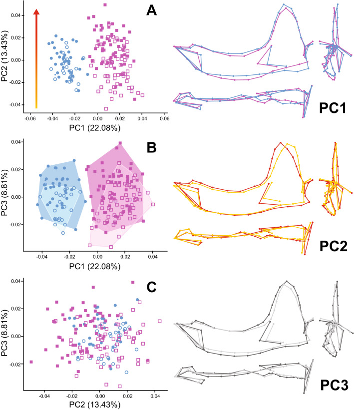 European and American minks are very similar in ecology, behavior and morphology. Both species hunt terrestrial vertebrates and aquatic prey, but the American mink is a more generalist predator which, among other factors, allows it to outcompete the European mink in areas where it has been introduced. We used 3D geometric morphometrics and estimates of muscle mechanical advantage to assess the degree of variation in mandibular morphology, and to determine whether such variation reflects dietary differences between the two species. The three main axes of variation represented interspecific differences, a common allometric trajectory between species and sexes, and the interspecific effect of sexual size dimorphism, with males having overall stronger bites than females. Differences in mandible shape and biomechanical parameters suggest that American minks are better equipped for preying on terrestrial vertebrates, while the features seen in European mink could be related to tougher prey, fish capture, or both. Additionally, within each species, the larger specimens of each sex present indicators of a higher percentage of terrestrial prey in their diet. These results indicate a low potential dietary overlap between both species, suggesting that factors other than prey competition may have a role in the decline of the European mink.