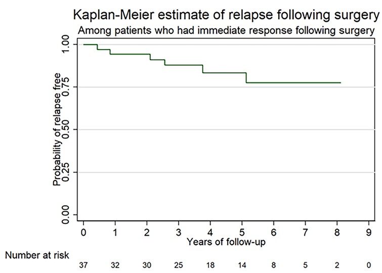 A significant proportion of patients with short-lasting unilateral neuralgiform headache attacks are refractory to medical treatments. Neuroimaging studies have suggested a role for ipsilateral trigeminal neurovascular conflict with morphological changes in the pathophysiology of this disorder. We present the outcome of an uncontrolled open-label prospective single-centre study conducted between 2012 and 2020, to evaluate the efficacy and safety of trigeminal microvascular decompression in refractory chronic short-lasting unilateral neuralgiform headache attacks with MRI evidence of trigeminal neurovascular conflict ipsilateral to the pain side. Primary endpoint was the proportion of patients who achieved an 'excellent response', defined as 90-100% weekly reduction in attack frequency, or 'good response', defined as a reduction in weekly headache attack frequency between 75% and 89% at final follow-up, compared to baseline. These patients were defined as responders. The study group consisted of 47 patients, of whom 31 had short-lasting unilateral neuralgiform headache attacks with conjunctival injection and tearing, and 16 had short-lasting unilateral neuralgiform headache attacks with cranial autonomic symptoms (25 females, mean age ± SD 55.2 years ± 14.8). Participants failed to respond or tolerate a mean of 8.1 (±2.7) preventive treatments pre-surgery. MRI of the trigeminal nerves (n = 47 patients, n = 50 symptomatic trigeminal nerves) demonstrated ipsilateral neurovascular conflict with morphological changes in 39/50 (78.0%) symptomatic nerves and without morphological changes in 11/50 (22.0%) symptomatic nerves. Postoperatively, 37/47 (78.7%) patients obtained either an excellent or a good response. Ten patients (21.3%, short-lasting unilateral neuralgiform headache attacks with conjunctival injection and tearing = 7 and short-lasting unilateral neuralgiform headache attacks with cranial autonomic symptoms = 3) reported no postoperative improvement. The mean post-surgery follow-up was 57.4 ± 24.3 months (range 11-96 months). At final follow-up, 31 patients (66.0%) were excellent/good responders. Six patients experienced a recurrence of headache symptoms. There was no statistically significant difference between short-lasting unilateral neuralgiform headache attacks with conjunctival injection and tearing and short-lasting unilateral neuralgiform headache attacks in the response to surgery (P = 0.463). Responders at the last follow-up were, however, more likely to not have interictal pain (77.42% versus 22.58%, P = 0.021) and to show morphological changes on the MRI (78.38% versus 21.62%, P = 0.001). The latter outcome was confirmed in the Kaplan-Meyer analysis, where patients with no morphological changes were more likely to relapse overtime compared to those with morphological changes (P = 0.0001). All but one patient, who obtained an excellent response without relapse, discontinued their preventive medications. Twenty-two post-surgery adverse events occurred in 18 patients (46.8%) but no mortality or severe neurological deficit was seen. Trigeminal microvascular decompression may be a safe and effective long-term treatment for patients suffering short-lasting unilateral neuralgiform headache attacks with MRI evidence of neurovascular conflict with morphological changes.