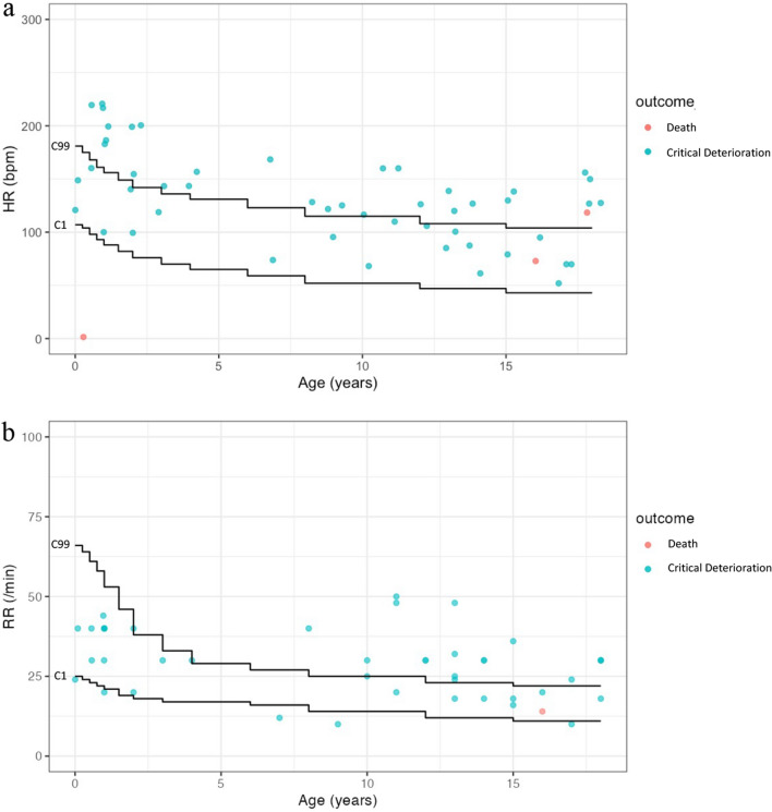 - O'Leary F, Hayen A, Lockie F, Peat J. Defining normal ranges and centiles for heart and respiratory rates in infants and children: A cross-sectional study of patients attending an Australian tertiary hospital paediatric emergency department. Arch. Dis. Child. 2015;100:733–737. doi: 10.1136/archdischild-2014-307401. - DOI - PMC - PubMed