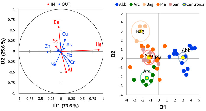 In this study, leaves of the evergreen holm oak Quercus ilex were used to assess airborne contamination of potentially toxic elements (PTEs) at five towns located on the slopes of the Mt. Amiata (central Italy), an area with a long history of mining and, more recently, an important district for the industrial exploitation of geothermal energy. PTE composition and covariance of washed and unwashed Q. ilex leaves of three different ages (6, 12 and 24 month-old) were used to identify atmospheric inputs of PTEs at residential areas, evaluate long-term adsorption and retention of PTEs by the leaves, thus providing an indication of potential human exposure. Moreover, the determination of foliar concentrations of major elements (C, N, S and P) allowed an assessment of the nutritional status of the investigated urban tree stands which excluded the existence of stress condition caused by air pollution or other disturbances. Results indicated that overall Pb, Cu, and Cd concentration were low in the investigated urban sites, if compared with similar studies conducted in larger Italian cities, denoting a low contribution of vehicular traffic to the atmospheric pathway. The five urban settlements were characterized by a specific profile of elements (Al, Ba, Hg and Sb) enriched in unwashed leaves, resulting from the distinct geochemical characteristics of the area and from diffuse (i.e., urban activity) and point sources of PTEs emission (i.e., brownfields, geothermal power plants). The latter sources primarily govern the distribution of Hg, whose contamination was found to be very localized close to a major abandoned mining area. Our data provided quantitative evidence of the spectrum of PTEs potentially impacting resident population and may prove useful in support of follow-up instrumental monitoring campaigns of air quality, as well as for human health and ecological risk assessments.