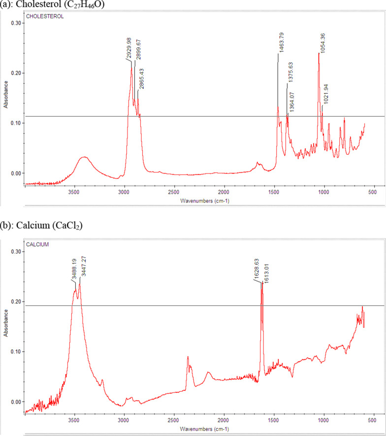 Conclusions: The library developed displayed good consistency and can be used for detection of gallstone composition in Pakistan and replace the traditional labor- and time-intensive chemical method of gallstone analysis.