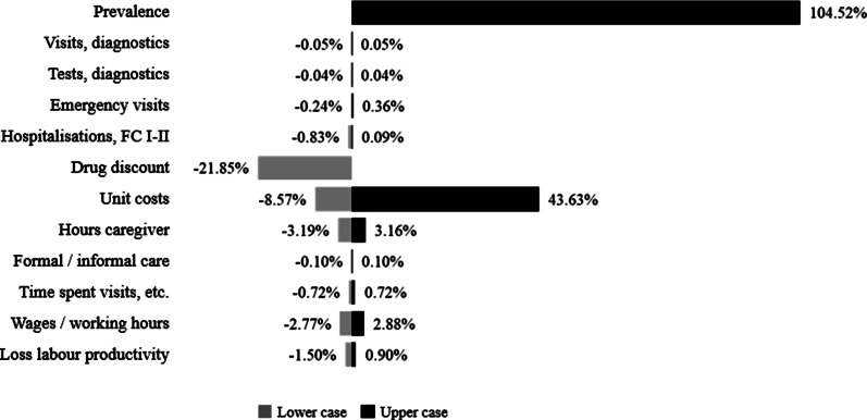 Methods: The study was conducted from a societal perspective, including direct and indirect costs associated with incident and prevalent patients. Average annual costs per patient were estimated by multiplying the number of resources consumed by their unit cost, differentiating the functional class (FC) of the patient. Total annual costs per FC were also calculated, taking the 2020 prevalence and incidence ranges into account. An expert committee validated the information on resource consumption and provided primary information on pharmacological consumption. Unit costs were estimated using official tariffs and salaries in Spain. A deterministic sensitivity analysis was conducted to test the uncertainty of the model.