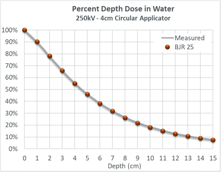 Results: Phantom measurements at mid-plane were found to match the prescribed dose within ±0.5%. For the 26 cases in this review, the median age was 78.5 years, with 15 females and 11 males. 85% of cases had Basal cell carcinoma (BCC); 1 had squamous cell carcinoma (SCC), one had synchronous BCC + SCC, and 1 had Merkel cell carcinoma. Twenty-one cases had T1N0 disease, 4 had T2N0, and 1 had T3N0. Dose and fractionation delivered were 40Gy in 10 fractions for the majority of cases. The complete response rate at a median follow-up of 6 months was 88%; 1 patient had a refractory tumour, and one patient had a recurrence. Toxicities were minor with 81% with no reported side effects. Three patients experienced grade 3 skin toxicity.