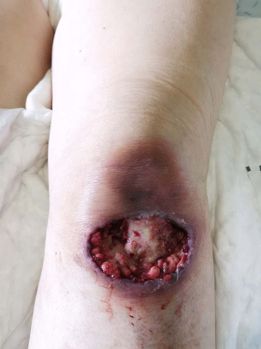 Background: Actinomycosis is an uncommon endogenous bacterial infection caused by Actinomyces species, characterized by the development of abscesses, tissue fibrosis, and fistulisation. It remains a diagnostic challenge, due to its similarities with diverse aetiologies' presentation, such as neoplasms, tuberculosis, or fungal infections. Actinomyces bovis is a microorganism rarely reported as a cause of human disease. Cutaneous involvement is sporadic. In this case, Actinomyces bovis was responsible for disseminated cutaneous disease in an immunosuppressed patient.