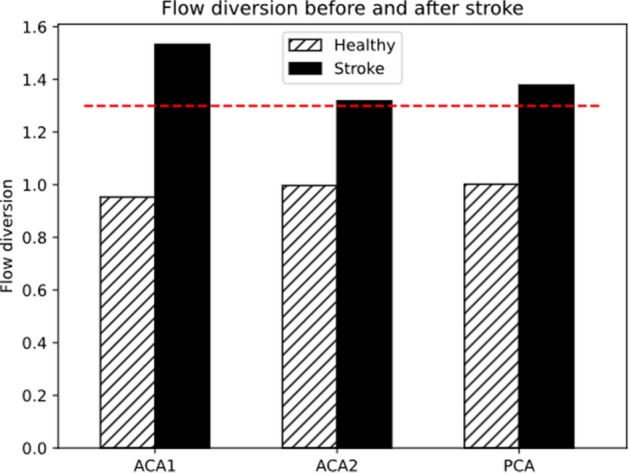 Assessment of distal cerebral perfusion after ischaemic stroke is currently only possible through expensive and time-consuming imaging procedures which require the injection of a contrast medium. Alternative approaches that could indicate earlier the impact of blood flow occlusion on distal cerebral perfusion are currently lacking. The aim of this study was to identify novel biomarkers suitable for clinical implementation using less invasive diagnostic techniques such as Transcranial Doppler (TCD). We used 1D modelling to simulate pre- and post-stroke velocity and flow wave propagation in a typical arterial network, and Sobol's sensitivity analysis, supported by the use of Gaussian process emulators, to identify biomarkers linked to cerebral perfusion. We showed that values of pulsatility index of the right anterior cerebral artery > 1.6 are associated with poor perfusion and may require immediate intervention. Three additional biomarkers with similar behaviour, all related to pulsatility indices, were identified. These results suggest that flow pulsatility measured at specific locations could be used to effectively estimate distal cerebral perfusion rates, and ultimately improve clinical diagnosis and management of ischaemic stroke.
