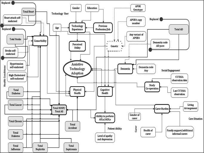 The work described in this paper builds upon our previous research on adoption modelling and aims to identify the best subset of features that could offer a better understanding of technology adoption. The current work is based on the analysis and fusion of two datasets that provide detailed information on background, psychosocial, and medical history of the subjects. In the process of modelling adoption, feature selection is carried out followed by empirical analysis to identify the best classification models. With a more detailed set of features including psychosocial and medical history information, the developed adoption model, using kNN algorithm, achieved a prediction accuracy of 99.41% when tested on 173 participants. The second-best algorithm built, using NN, achieved 94.08% accuracy. Both these results have improved accuracy in comparison to the best accuracy achieved (92.48%) in our previous work, based on psychosocial and self-reported health data for the same cohort. It has been found that psychosocial data is better than medical data for predicting technology adoption. However, for the best results, we should use a combination of psychosocial and medical data where it is preferable that the latter is provided from reliable medical sources, rather than self-reported.