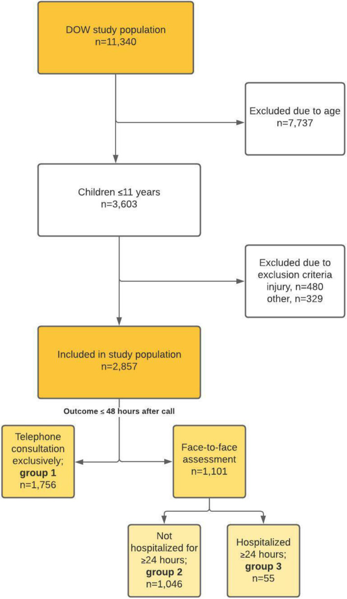 Methods: In a convergent mixed methods study design we asked patients to rate their degree-of-worry before talking to a call-handler. We used quantitative data of degree-of-worry, triage- and patient outcome in pediatric calls (n = 2857), and the qualitative content from 54 calls with subsequent hospitalization ≥24 h.