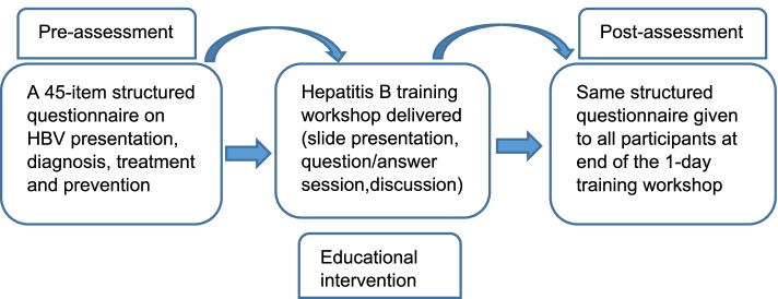 Conclusion: A structured HBV education intervention conducted as part of an HIV/HBV care integration training for health care workers yielded improved knowledge on HBV and identified aspects that require further training. This approach may be replicated in other settings, as a public health strategy to heighten HBV elimination efforts.