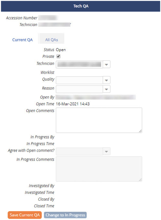 Regular communication between technologists and radiologists is necessary for maintaining optimal diagnostic image quality throughout a radiology practice. In a large hospital system with multiple sites, this task becomes increasingly difficult without simultaneously causing significant disruptions in the clinical workflow and decreased throughput. Thus, establishing a system for quality control reporting that enables effective communication in a seamless and convenient manner is imperative. In this report, we describe the development of a new integrated system, in collaboration with our PACS vendor, with tools that allow for instant reporting of quality errors and dashboards providing real-time up-to-date quality data across our hospital system, directly accessible from PACS. To date, 8,167 quality reports have been logged in our new system with roughly 355 submissions per month. Early user engagement and consensus feedback among radiologists and technologists have been positive suggesting an overall improvement from prior systems. We hope this report can help inform other radiology enterprises seeking to improve quality control reporting within their clinical practice.