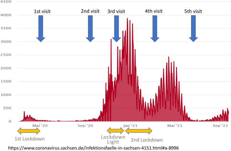 Conclusion: During the second and third wave of the pandemic in Germany, students and teachers are not overrepresented in SARS-CoV-2 infections. The percentage of undetected cases is moderate and decreases over time. The risk of contracting SARS-CoV-2 within the household is higher than contracting it in educational settings making school closures rather ineffective in terms of pandemic control measures or individual risk reduction in children and adolescents.