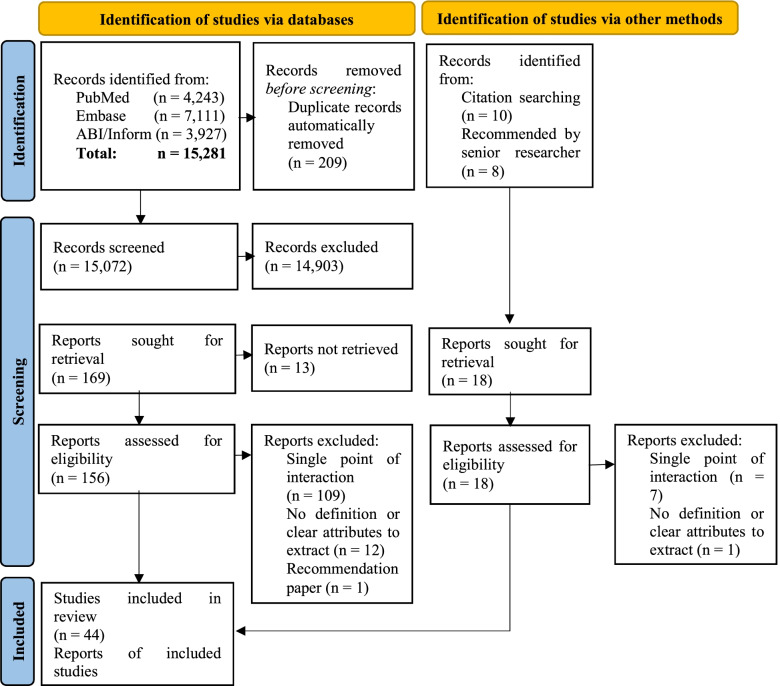 Methods: An innovative hybrid method combining systematic review, concept analysis and bibliometric analysis was undertaken to summarize qualitative, quantitative, and mixed-method studies. Databases searched were PubMed, Embase and ABI/Inform. Methodological quality of included studies was then assessed.