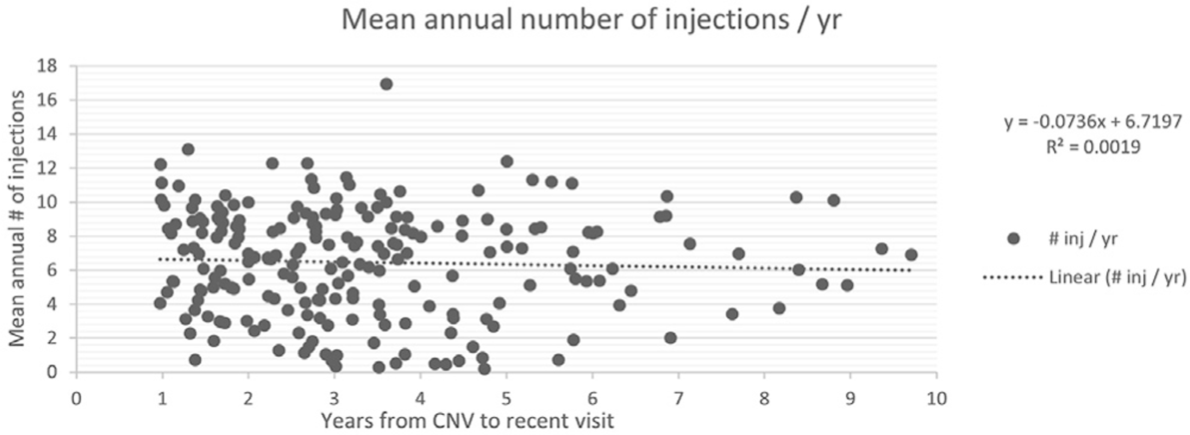 Conclusions: Patients in the FSH monitoring program showed excellent long-term VA years after conversion to nAMD.
