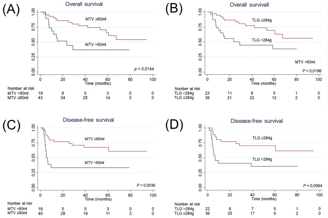 Conclusion: We found a potential benefit in adding LNM to the main tumor measurements, as well as in using a BLT for MTV segmentation compared to the most commonly used SUV2.5 threshold. Despite its limitations, this study suggests a practical and simple manner to use these parameters in standard clinical practice, aiming to help elaborate a general consensus.