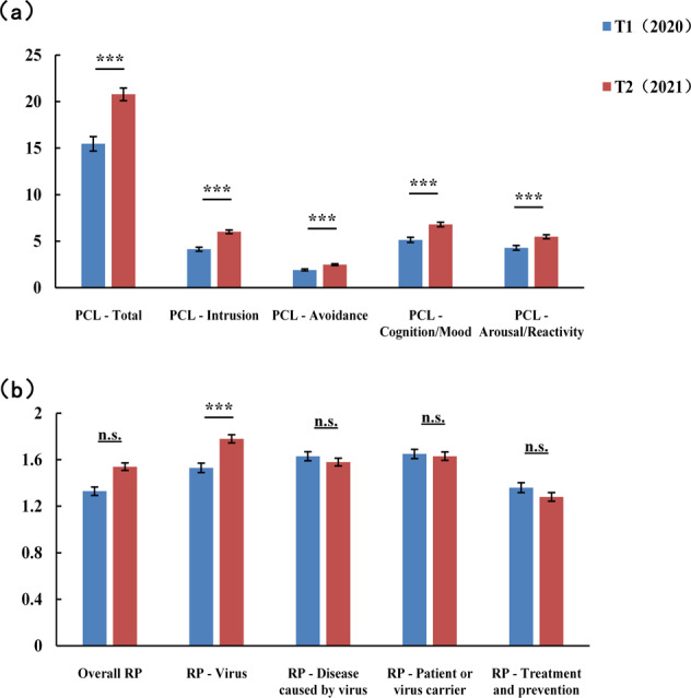 The increase of PTSD in front-line health care workers during the COVID-19 pandemic and the mediating role of risk perception: a one-year follow-up study