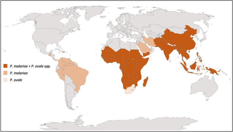 The primate malaria parasites Plasmodium malariae, Plasmodium brasilianum and Plasmodium ovale spp.: genomic insights into distribution, dispersal and host transitions