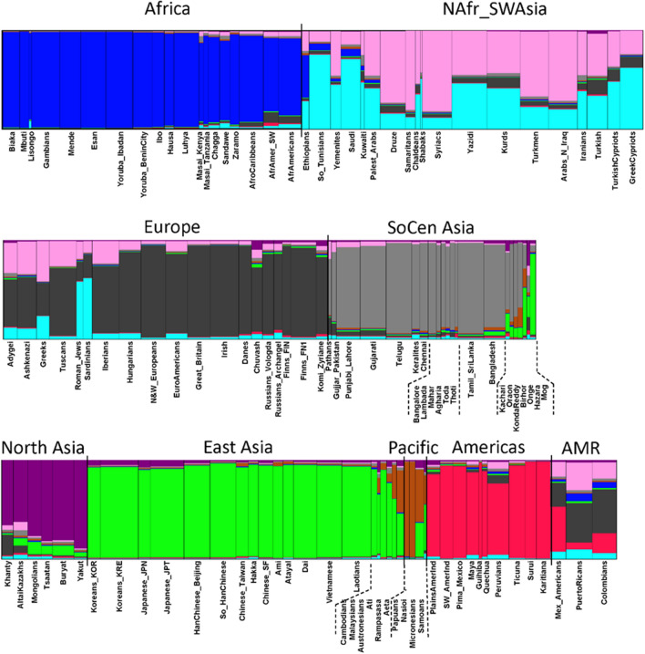 Population genetic studies of North Asian ethnic groups have focused on genetic variation of sex chromosomes and mitochondria. Studies of the extensive variation available from autosomal variation have appeared infrequently. We focus on relationships among population samples using new North Asia microhaplotype data. We combined genotypes from our laboratory on 58 microhaplotypes, distributed across 18 autosomes, on 3945 individuals from 75 populations with corresponding data extracted for 26 populations from the Thousand Genomes consortium and for 22 populations from the GenomeAsia 100 K project. A total of 7107 individuals in 122 total populations are analyzed using STRUCTURE, Principal Component Analysis, and phylogenetic tree analyses. North Asia populations sampled in Mongolia include: Buryats, Mongolians, Altai Kazakhs, and Tsaatans. Available Siberians include samples of Yakut, Khanty, and Komi Zyriane. Analyses of all 122 populations confirm many known relationships and show that most populations from North Asia form a cluster distinct from all other groups. Refinement of analyses on smaller subsets of populations reinforces the distinctiveness of North Asia and shows that the North Asia cluster identifies a region that is ancestral to Native Americans.