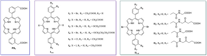 - Banfi S, Caruso E, Gramatica P et al (2006) Comparison between 5,10,15,20-tetraaryl- and 5,15-diarylporphyrins as photosensitizers: synthesis, photodynamic activity, and quantitative structure-activity relationship modeling. J Med Chem 49(11):3293–3304. 10.1021/jm050997m - PubMed