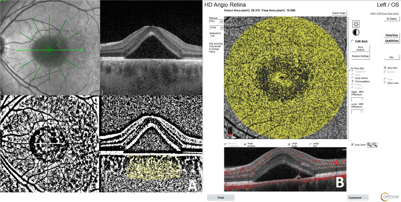 Result: A significant decrease was observed in LA, TA, and CVI at the third month after the laser treatment (p = 0.018, p = 0.024, p = 0.046). The best-corrected visual acuity (BCVA) and choriocapillaris plexus (CCP) flow area values were increased after treatment in group 1 (p < 0.001, p = 0.002). The final subfoveal fluid height, and CVI were lower in group 1 (p = 0.003, p = 0.011). The visual acuity and CCP flow area were higher in group 1 at the third month (p < 0.001, p = 0.003). A positive correlation between the final BCVA and CVI was observed (r = 0.539, p = 0.01).