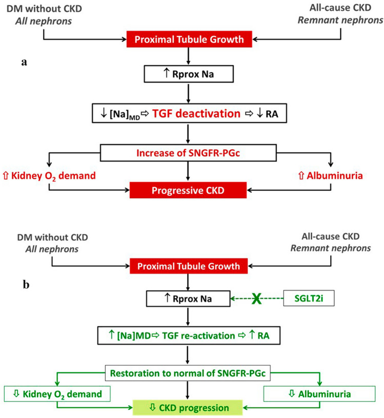 Chronic kidney disease (CKD) is a global health problem, affecting more than 850 million people worldwide. The number of patients receiving renal replacement therapy (dialysis or renal transplantation) has increased over the years, and it has been estimated that the number of people receiving renal replacement therapy will more than double from 2.618 million in 2010 to 5.439 million in 2030, with wide differences among countries. The main focus of CKD treatment has now become preserving renal function rather than replacing it. This is possible, at least to some extent, through the optimal use of multifactorial therapy aimed at preventing end-stage kidney disease and cardiovascular events. Sodium/glucose cotransporter 2 inhibitors (SGLT2i) reduce glomerular hypertension and albuminuria with beneficial effects on progression of renal damage in both diabetic and non-diabetic CKD. SGLT2 inhibitors also show great benefits in cardiovascular protection, irrespective of diabetes. Therefore, the use of these drugs will likely be extended to the whole CKD population as a new standard of care.