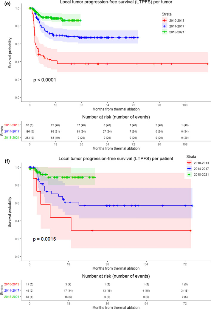 Methods: This assessment from a prospective, longitudinal tumor registry included 329 patients who underwent 541 procedures for 1350 CRLM from January 2010 to February 2021. Three cohorts were formed: 2010-2013 (129 procedures [53 percutaneous]), 2014-2017 (206 procedures [121 percutaneous]) and 2018-2021 (206 procedures [135 percutaneous]). Local tumor progression-free survival (LTPFS) and overall survival (OS) data were estimated using the Kaplan-Meier method. Potential confounding factors were analyzed with uni- and multivariable Cox regression analyses.