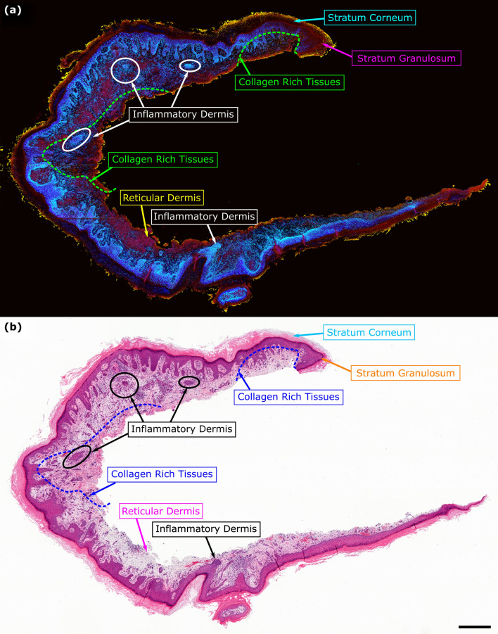 In the past decades, absorption modalities have emerged as powerful tools for label-free functional and structural imaging of cells and tissues. Many biomolecules present unique absorption spectra providing chromophore-specific information on properties such as chemical bonding, and sample composition. As chromophores absorb photons the absorbed energy is emitted as photons (radiative relaxation) or converted to heat and under specific conditions pressure (non-radiative relaxation). Modalities like fluorescence microscopy may capture radiative relaxation to provide contrast, while modalities like photoacoustic microscopy may leverage non-radiative heat and pressures. Here we show an all-optical non-contact total-absorption photoacoustic remote sensing (TA-PARS) microscope, which can capture both radiative and non-radiative absorption effects in a single acquisition. The TA-PARS yields an absorption metric proposed as the quantum efficiency ratio (QER), which visualizes a biomolecule's proportional radiative and non-radiative absorption response. The TA-PARS provides label-free visualization of a range of biomolecules enabling convincing analogues to traditional histochemical staining of tissues, effectively providing label-free Hematoxylin and Eosin (H&E)-like visualizations. These findings establish an effective all-optical non-contact total-absorption microscope for label-free inspection of biological materials.