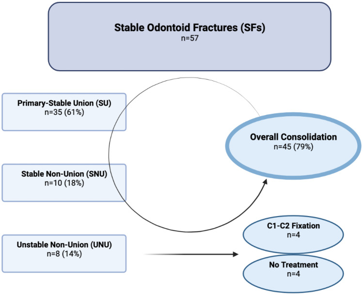 Conclusion: To separate dens fractures into SFs and UFs is feasible. For SFs, semi-rigid immobilization provides a high consolidation rate. Stable non-unions are acceptable, and the authors suggest a posterior transarticular C1-C2 fixation as the preferred surgical treatment for UFs.