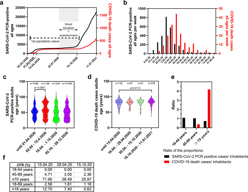 Methods: Serum was collected from 2940 adults via stationary or mobile teams during the 1st pandemic wave steady state period. We selected an antibody test system with maximal specificity, also excluding seroreversion effects due to a high longitudinal test performance. For the calculations of infection and fatality rates, we accounted for the delays of seroconversion and death after infection.