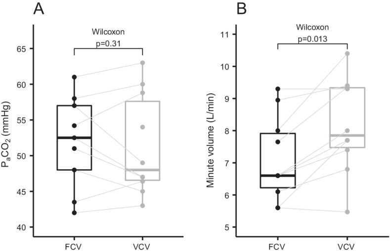 Results: FCV was feasible in all patients and no adverse events were observed. There was no difference in the PaO2/FIO2 ratio after 30 min of ventilation in FCV mode (169 mmHg) compared to 30 min of ventilation in VCV mode subsequently (168 mmHg, 95% CI of pseudo-medians (- 10.5, 3.6), p = 0.56). The tidal volumes (p < 0.01) and minute ventilation were lower during FCV (p = 0.01) while PaCO2 was similar at the end of the 30-min ventilation periods (p = 0.31). Mean arterial pressure during FCV was comparable to baseline.