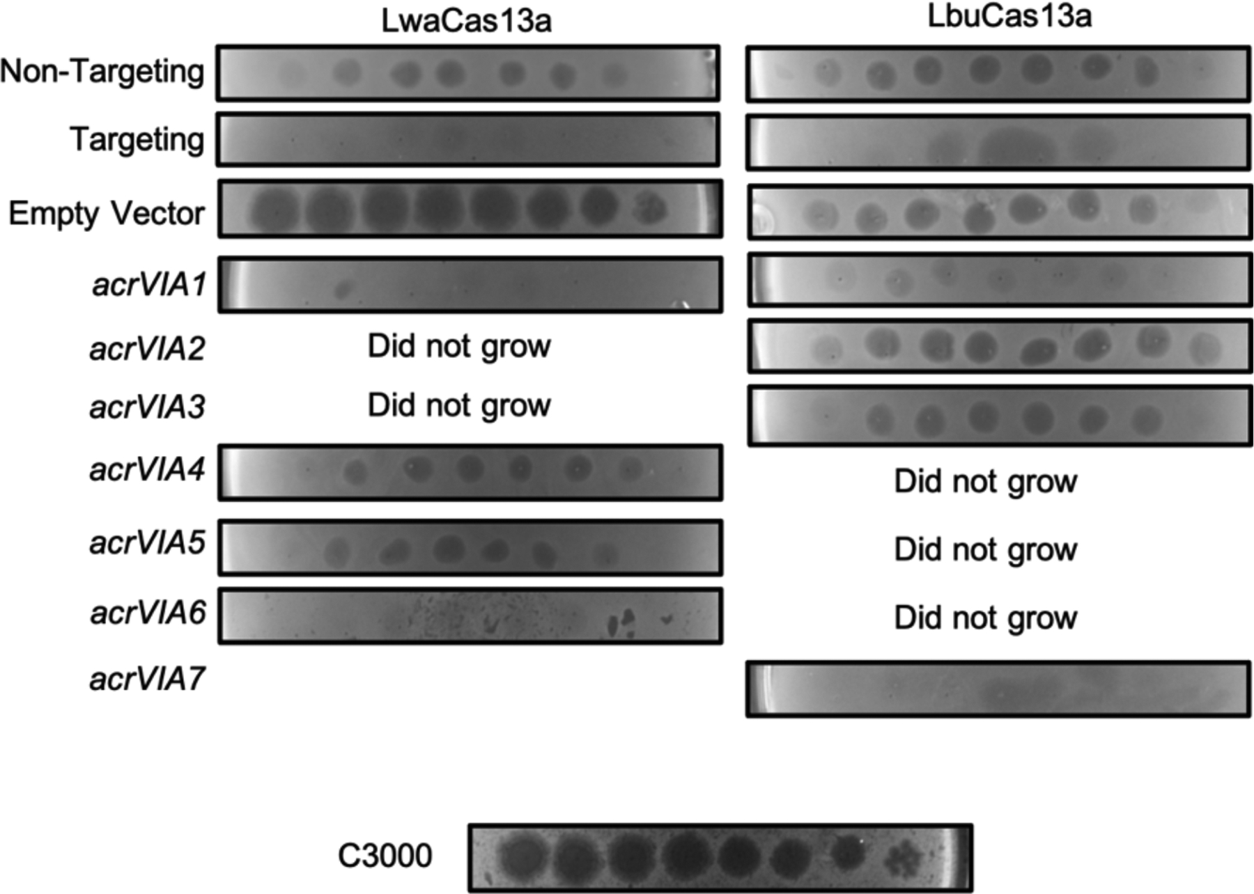 Lack of Cas13a inhibition by anti-CRISPR proteins from Leptotrichia prophages