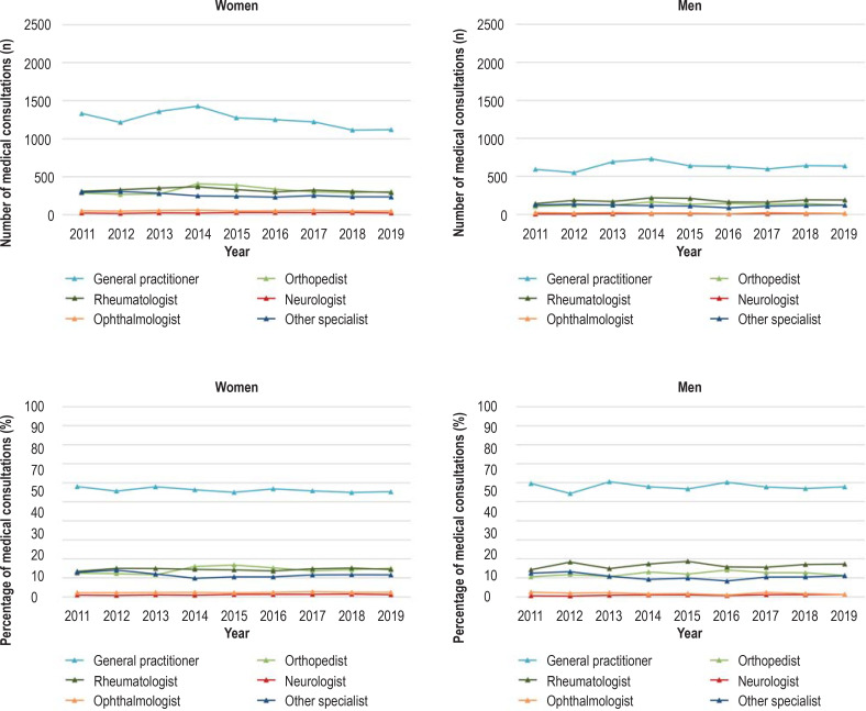 Methods: This review is based on publications retrieved by a selective literature search in PubMed. Moreover, the administrative incidence and prevalence of PMR in the years 2011-2019 was determined from data of the AOK Baden-Württemberg statutory health insurance carrier for insurees aged 40 and older. In addition, we quantified the number of consultations with physicians involved in the diagnosis.