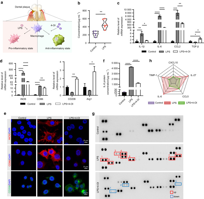 Periodontitis is a widespread oral disease characterized by continuous inflammation of the periodontal tissue and an irreversible alveolar bone loss, which eventually leads to tooth loss. Four-octyl itaconate (4-OI) is a cell-permeable itaconate derivative and has been recognized as a promising therapeutic target for the treatment of inflammatory diseases. Here, we explored, for the first time, the protective effect of 4-OI on inhibiting periodontal destruction, ameliorating local inflammation, and the underlying mechanism in periodontitis. Here we showed that 4-OI treatment ameliorates inflammation induced by lipopolysaccharide in the periodontal microenvironment. 4-OI can also significantly alleviate inflammation and alveolar bone loss via Nrf2 activation as observed on samples from experimental periodontitis in the C57BL/6 mice. This was further confirmed as silencing Nrf2 blocked the antioxidant effect of 4-OI by downregulating the expression of downstream antioxidant enzymes. Additionally, molecular docking simulation indicated the possible mechanism under Nrf2 activation. Also, in Nrf2-/- mice, 4-OI treatment did not protect against alveolar bone dysfunction due to induced periodontitis, which underlined the importance of the Nrf2 in 4-OI mediated periodontitis treatment. Our results indicated that 4-OI attenuates inflammation and oxidative stress via disassociation of KEAP1-Nrf2 and activation of Nrf2 signaling cascade. Taken together, local administration of 4-OI offers clinical potential to inhibit periodontal destruction, ameliorate local inflammation for more predictable periodontitis.