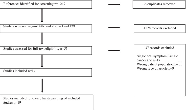 Methods: The review was conducted/reported according to international guidelines for undertaking scoping reviews. PubMed, Embase, and CINAHL were searched for articles involving adult patients with advanced cancer, which involved assessment of ≥ 2 oral symptoms, and which involved patients with > 1 type of cancer.
