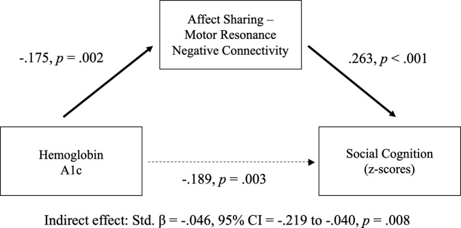 Social cognitive impairments are core features of schizophrenia spectrum disorders (SSD) and are associated with greater functional impairment and decreased quality of life. Metabolic disturbances have been related to greater impairment in general neurocognition, but their relationship to social cognition has not been previously reported. In this study, metabolic measures and social cognition were assessed in 245 participants with SSD and 165 healthy comparison subjects (HC), excluding those with hemoglobin A1c (HbA1c) > 6.5%. Tasks assessed emotion processing, theory of mind, and social perception. Functional connectivity within and between social cognitive networks was measured during a naturalistic social task. Among SSD, a significant inverse relationship was found between social cognition and cumulative metabolic burden (β = -0.38, p < 0.001) and HbA1c (β = -0.37, p < 0.001). The relationship between social cognition and HbA1c was robust across domains and measures of social cognition and after accounting for age, sex, race, non-social neurocognition, hospitalization, and treatment with different antipsychotic medications. Negative connectivity between affect sharing and motor resonance networks was a partial mediator of this relationship across SSD and HC groups (β = -0.05, p = 0.008). There was a group x HbA1c effect indicating that SSD participants were more adversely affected by increasing HbA1c. Thus, we provide the first report of a robust relationship in SSD between social cognition and abnormal glucose metabolism. If replicated and found to be causal, insulin sensitivity and blood glucose may present as promising targets for improving social cognition, functional outcomes, and quality of life in SSD.