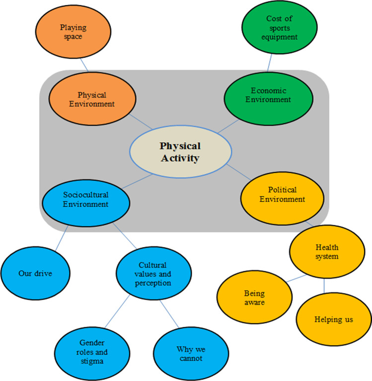 Results: Four major themes emerged associated with sociocultural, economic, political, and physical environmental factors. Males emphasised sports and working on farmlands as preferred types of physical activity, while females focused on family activities and daily activities and support for females' separate playgrounds. There was a focus on previous health promotion programs that did not incorporate the cultural values, cultural competence beliefs, and traditional ways of the rural Indigenous Fijian community.